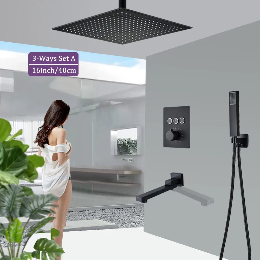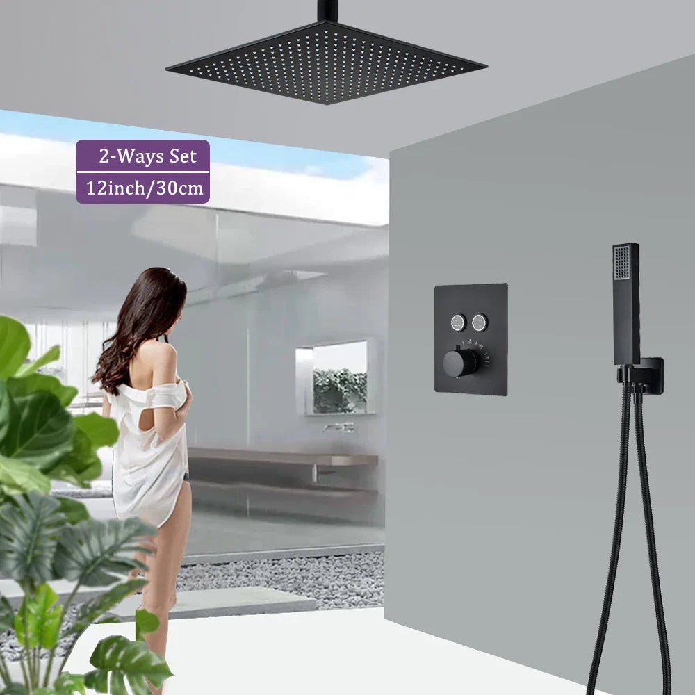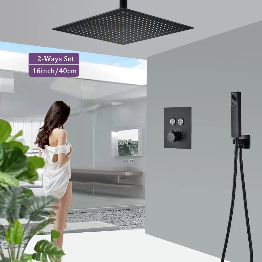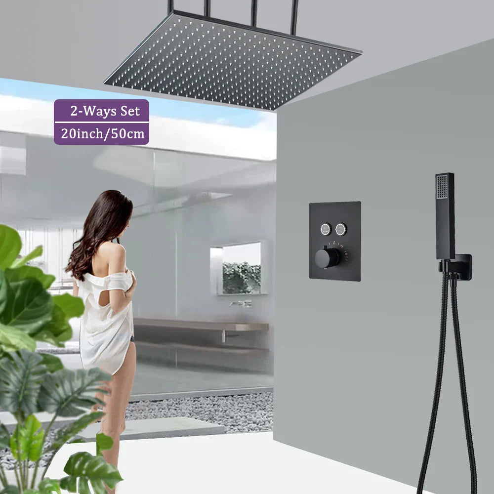 Choose from different sizes of shower heads, ranging from 12'' to 40X80cm, to customize your shower experience. The button control thermostatic mixer valve and concealed install shower design provide a sleek and minimalist aesthetic, perfect for a spa-like retreat in your own home.