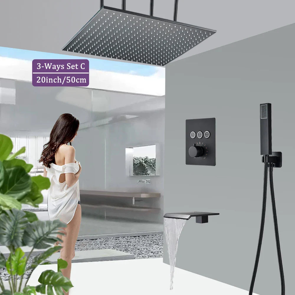 Upgrade your bathroom with the Afralia™ Thermostatic Shower Faucet Set with Rainfall Waterfall System and indulge in a luxurious shower experience every day. Experience the perfect blend of style, functionality, and comfort with this premium shower faucet set.