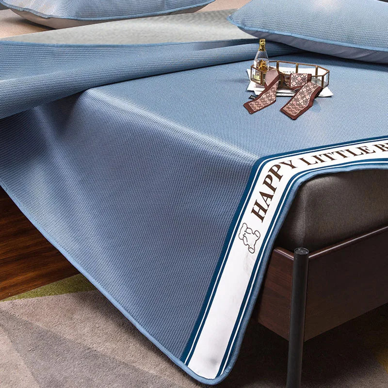 Crafted with premium quality 100% polyester material, this set features a non-slip design, ensuring a secure and comfortable sleep experience. The natural plant fibers used in the construction of this set provide a soft and cooling touch, ideal for hot summer nights.