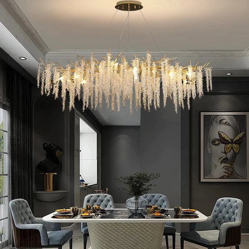 Afralia™ Crystal Gold Chain Chandelier Ceiling Lamp for Home DécorAfralia™