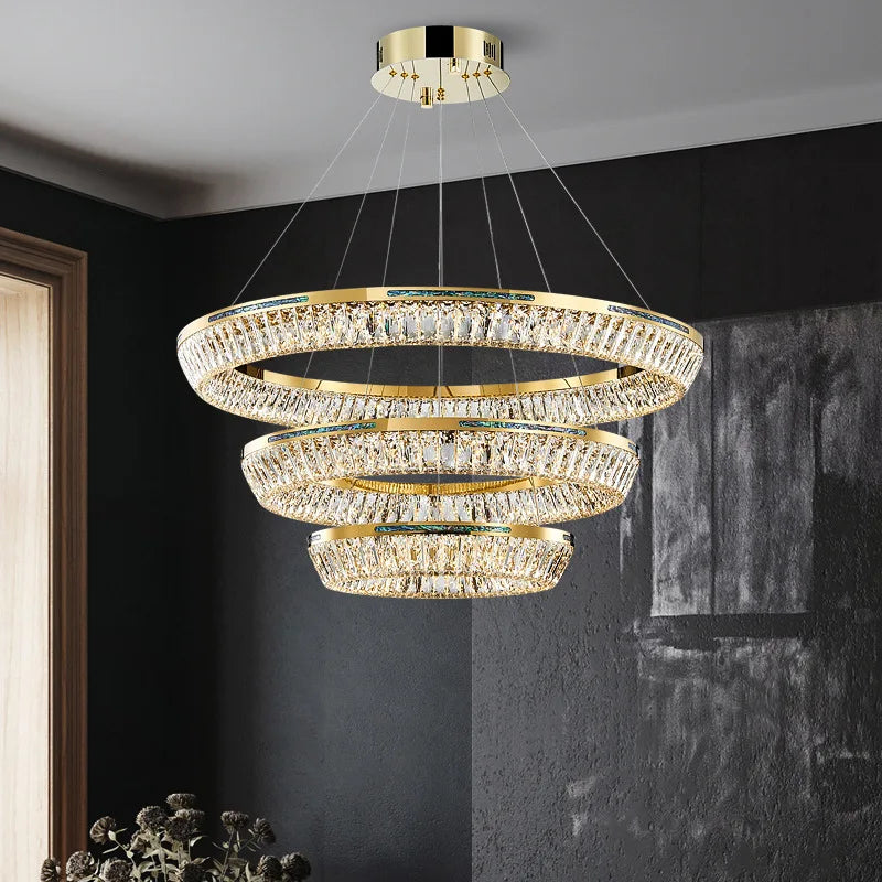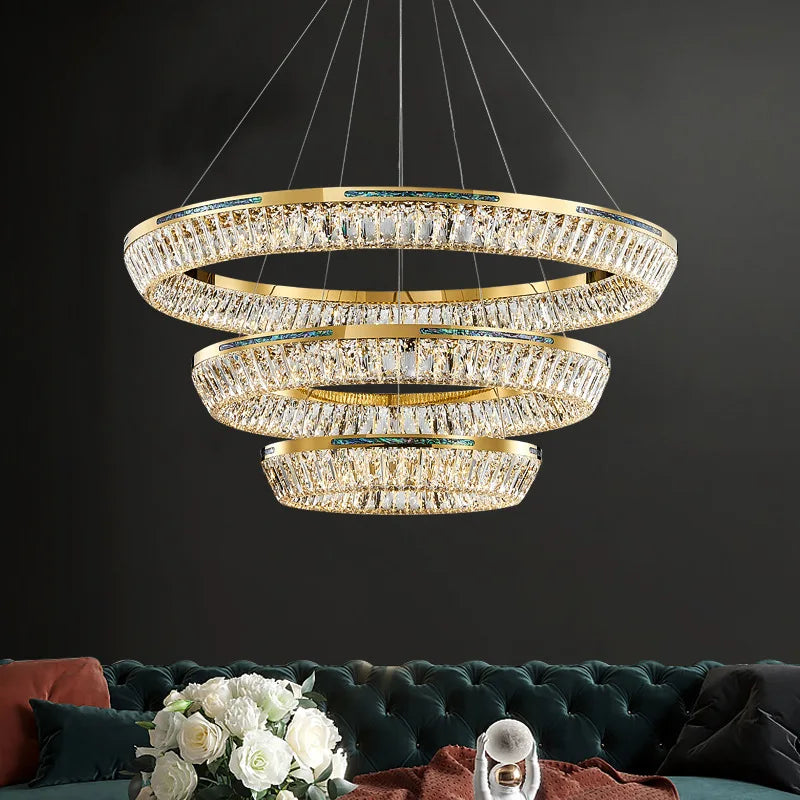 Afralia™ Gold Double Layer Ring Crystal Pendant Light for Elegance in Every RoomAfralia™