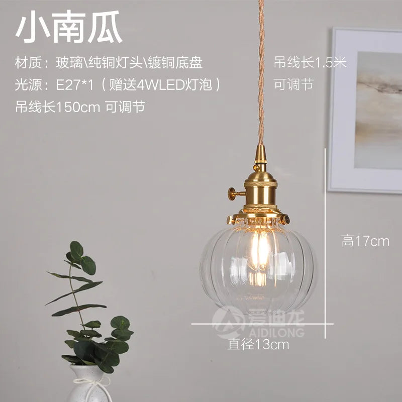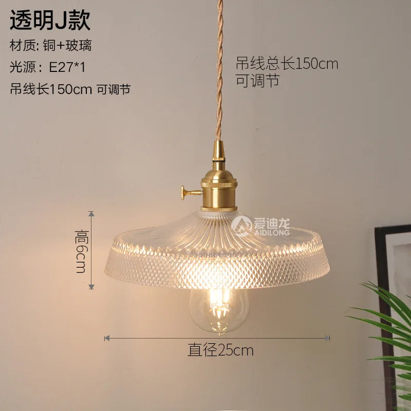 Afralia™ Nordic Copper LED Glass Pendant Light Fixture - Modern Restaurant Bar Hanging Lamp