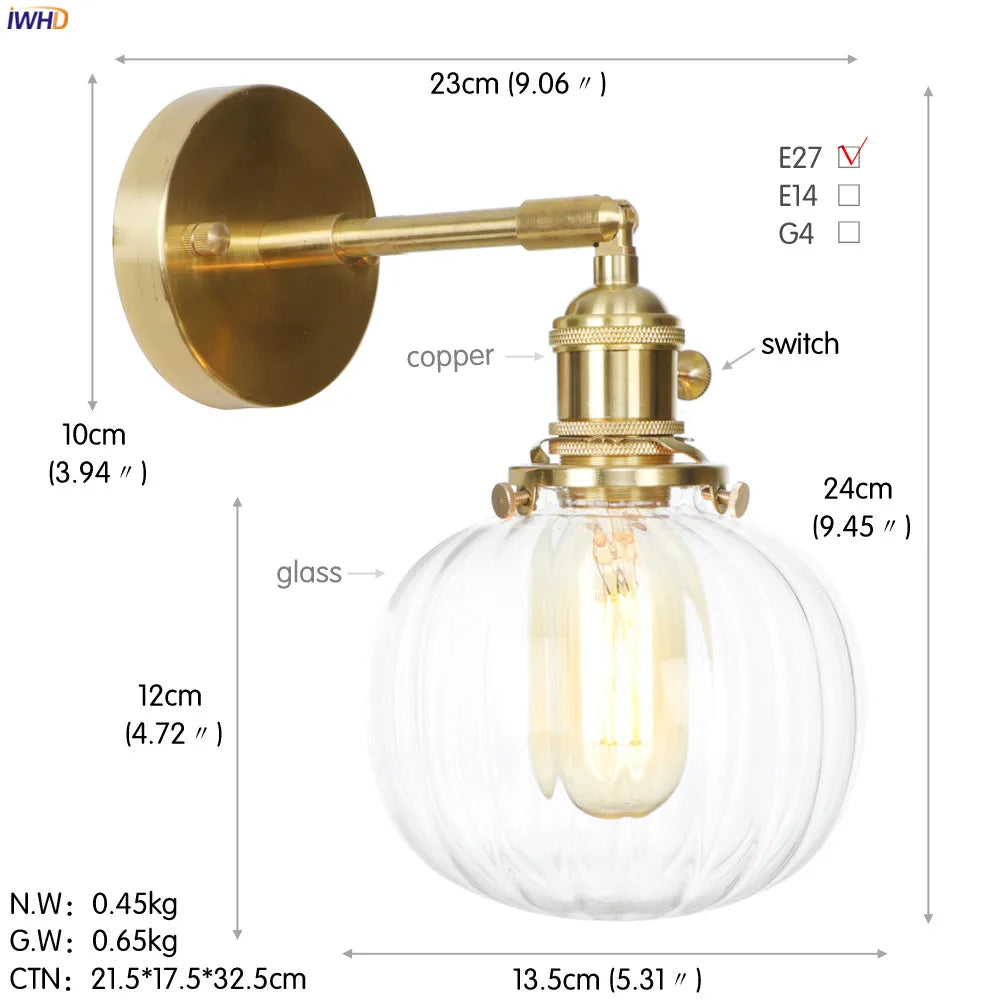 Afralia™ Nordic Glass LED Wall Lights Bedroom Bathroom Mirror Switch Modern Copper Sconce
