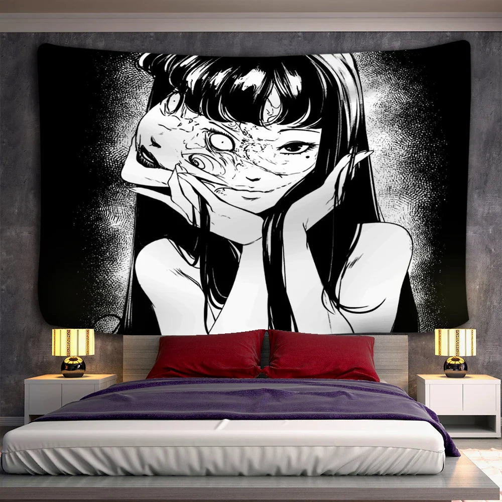 Afralia™ Mysterious Horror Anime Tapestry | Kawaii Room Decor Art Illustration