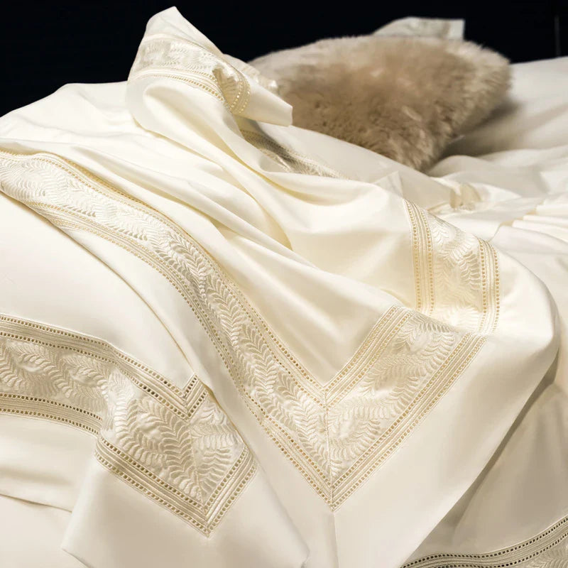 Experience the ultimate luxury with our Afralia™ 1400TC Egyptian Cotton Bedding Set exquisitely crafted for your comfort and style. Made from 100% cotton with a luxurious 1200TC fabric construction, this set includes a duvet cover, two pillowcases, and a sheet, all featuring a wide edge embroidery and hollow out design for a touch of elegance.