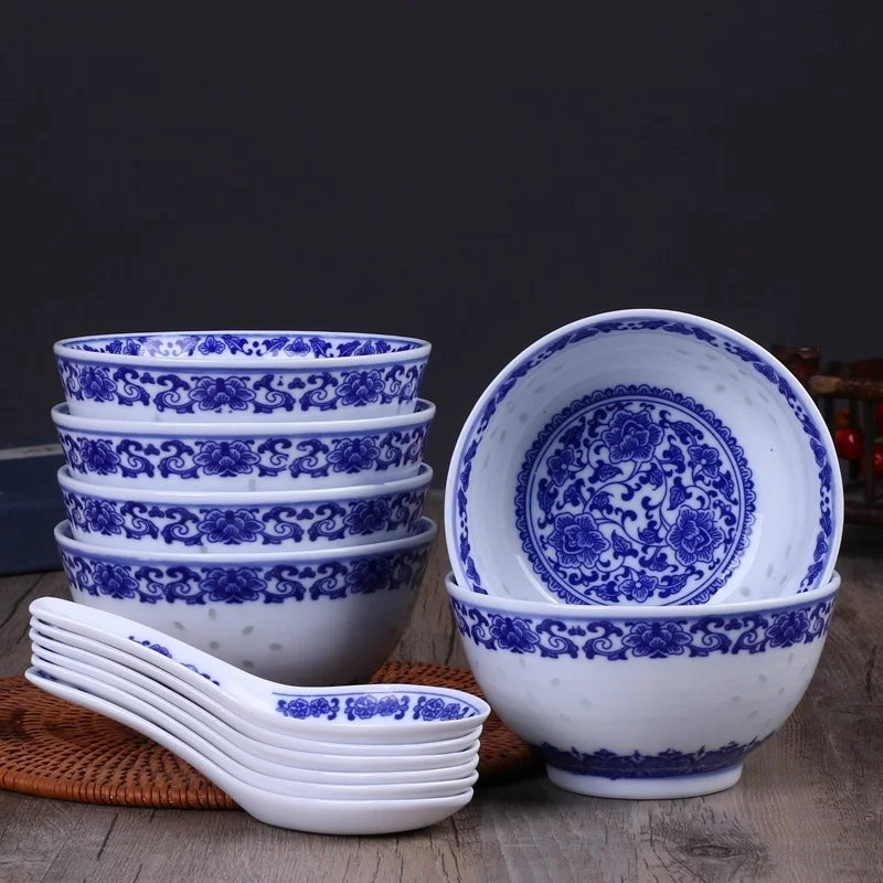 Afralia™ Blue And White Porcelain Dragon Rice Bowls Set
