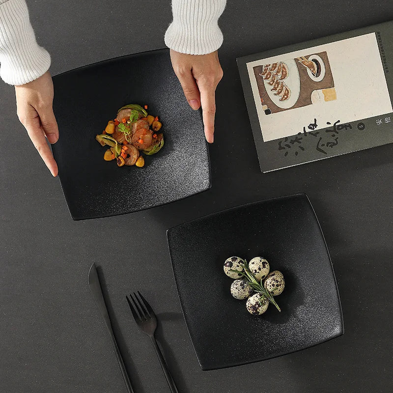 Afralia™ 7.5 Inch Square Black Matte Ceramic Dining Plate