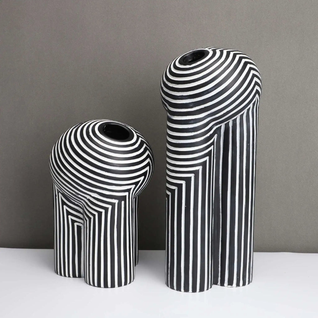 Afralia™ Striped Resin Vase: Abstract Black & White Home Decor Craft Abstract Geometry Pot