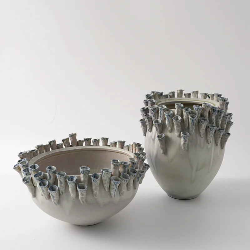 Afralia™ Handcrafted Ceramic Relief Vase for Home Decor & Flower Arrangement