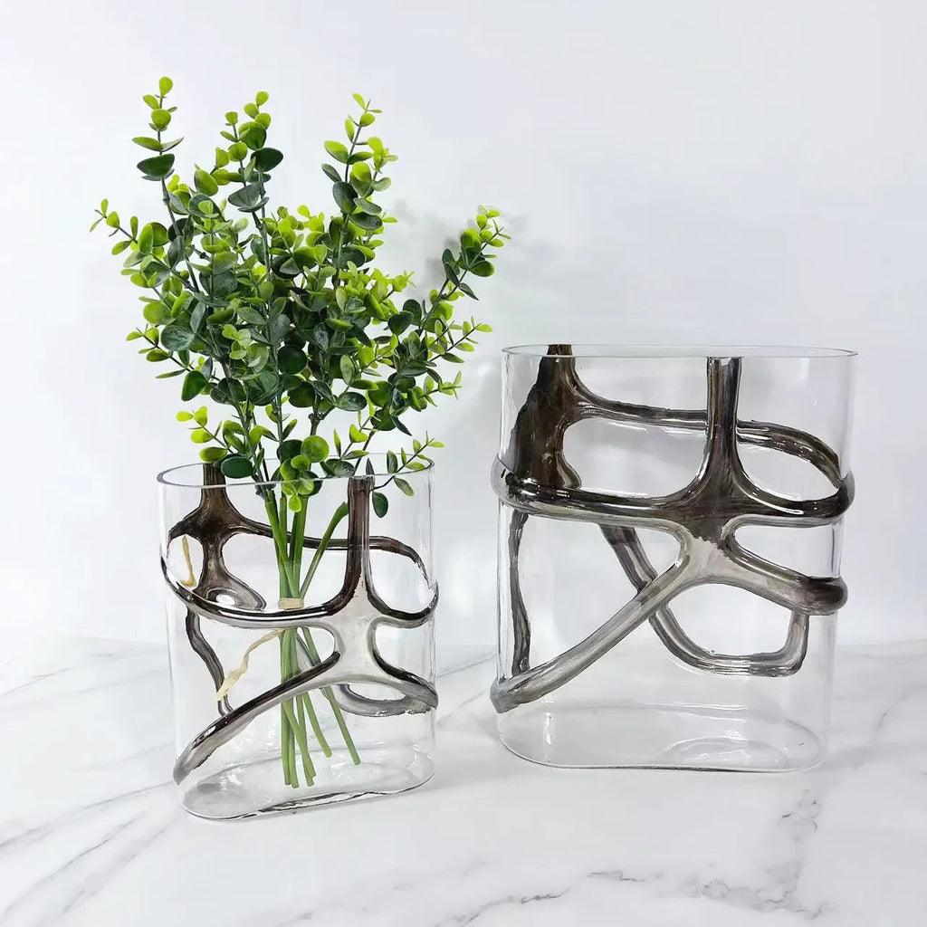 Afralia™ Gold-Edged Glass Vase with Geometric Patterns for Home Decor