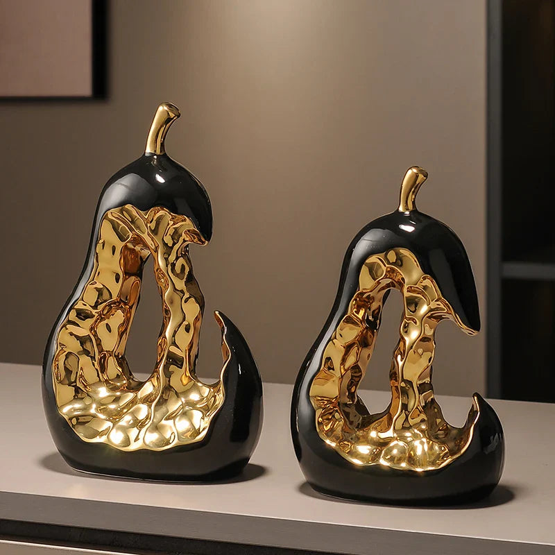 Afralia™ Ceramic Golden Pear Sculpture - Abstract Hollow Fruit Decor for Home Accessories