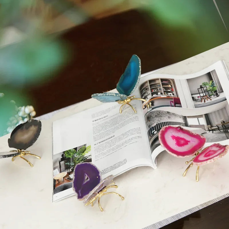 Introducing the Afralia™ Golden Crystal Agate Butterfly Sculpture, a stunning decorative figurine that adds a touch of elegance to any space. Crafted with high-quality metal, this sculpture exudes a modern style that is sure to captivate all who see it.