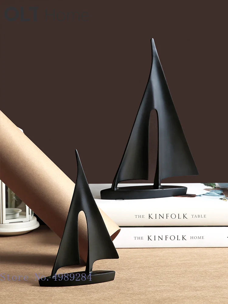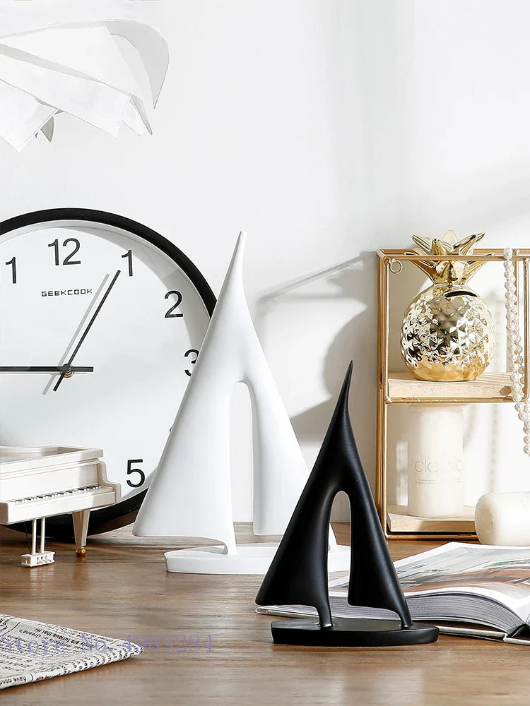 Afralia™ Abstract Resin Sailboat Ferry Triangle Ornament - Golden Home Decor Craft