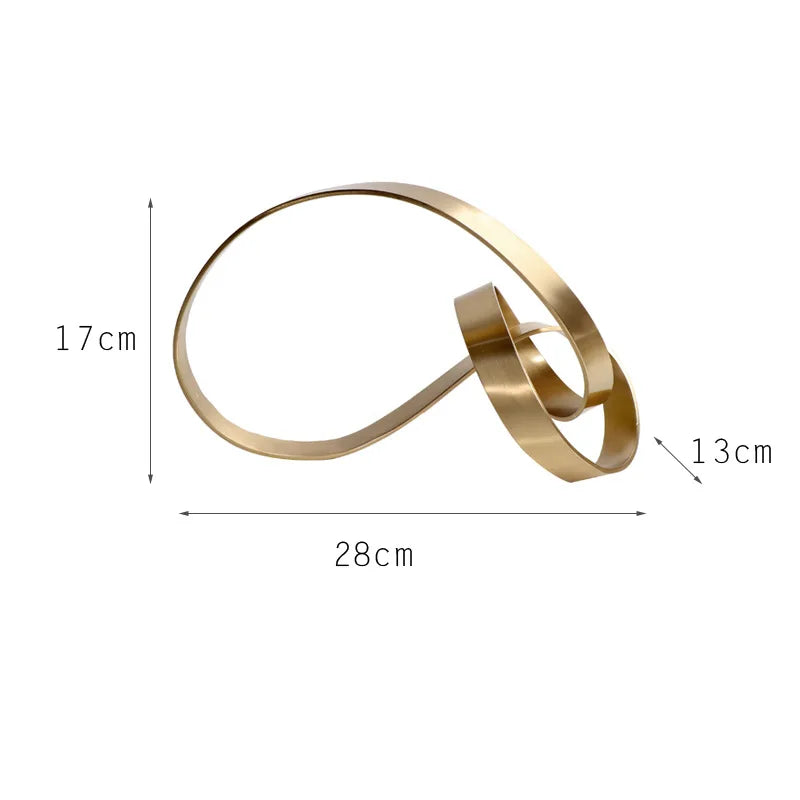 Introducing the Afralia™ Abstract Knot Golden Tape Metal Sculpture Figurine, a stunning piece that will elevate the décor of any room in your home. Crafted from high-quality metal, this modern-style sculpture exudes elegance and sophistication.