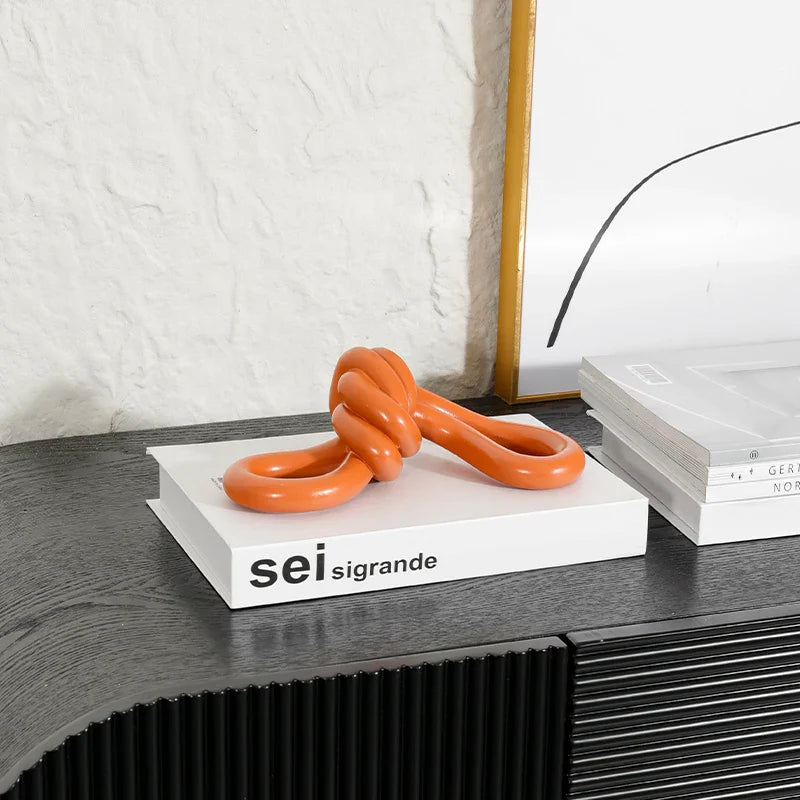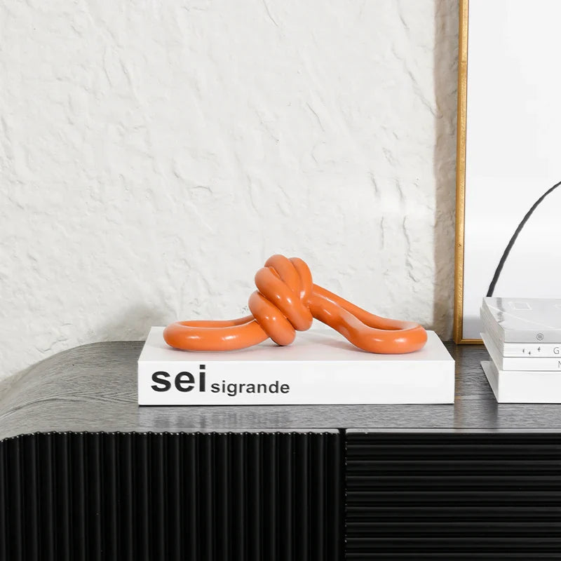 Afralia™ Orange Knot Geometric Sculpture Wrap Ball Ornament Figurines for Home Decoration