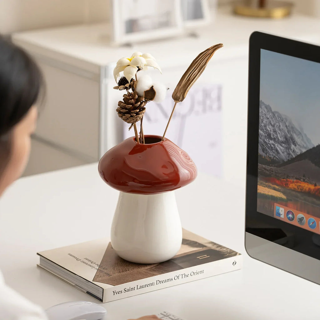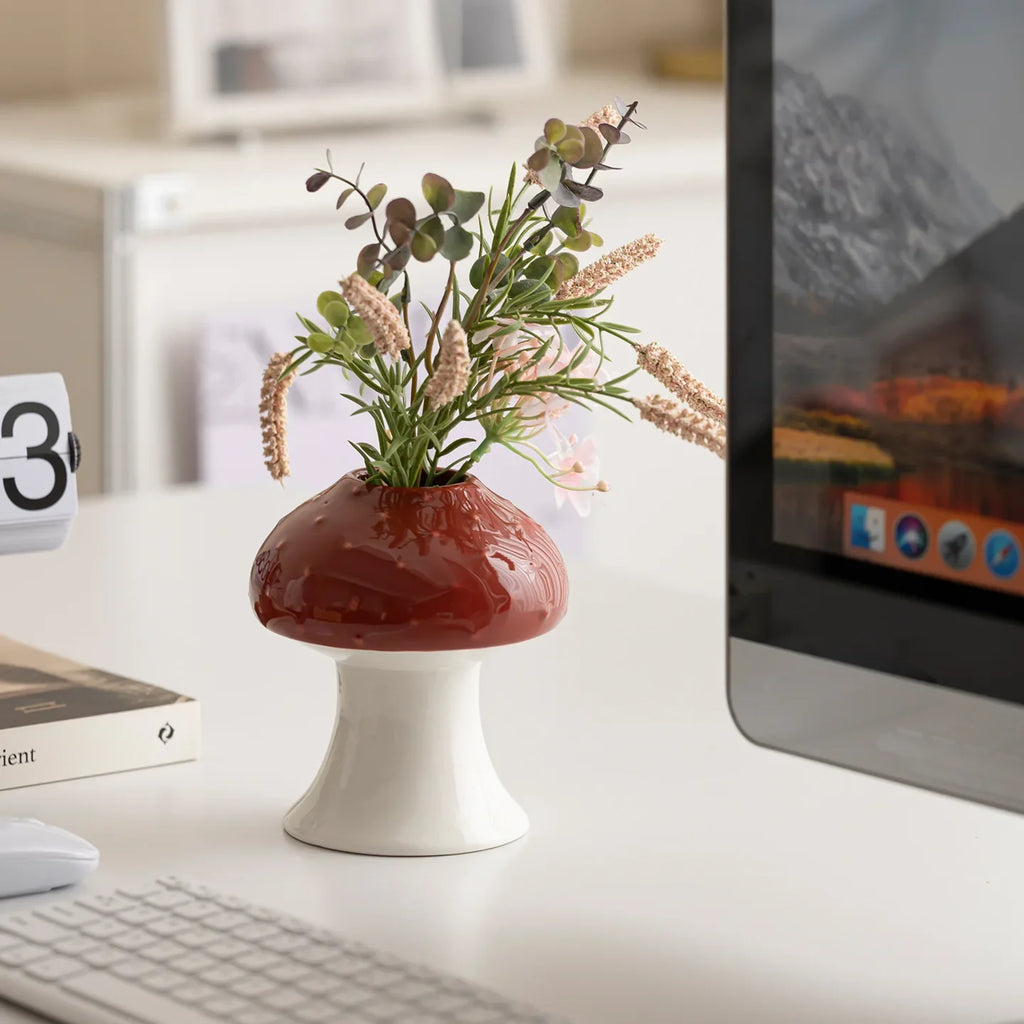 Afralia™ Mushroom Shape Ceramic Vase Handmade Flowerpot Home Decoration
