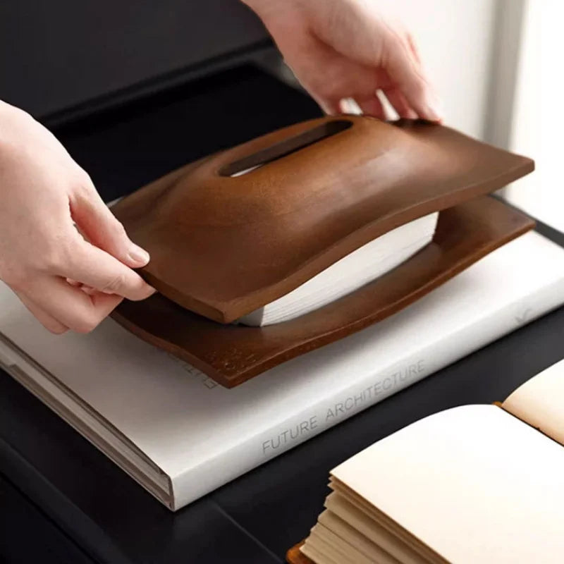 Afralia™ Wood Grain Geometric Tissue Box & Paper Towel Holder Flat Storage Home Decor