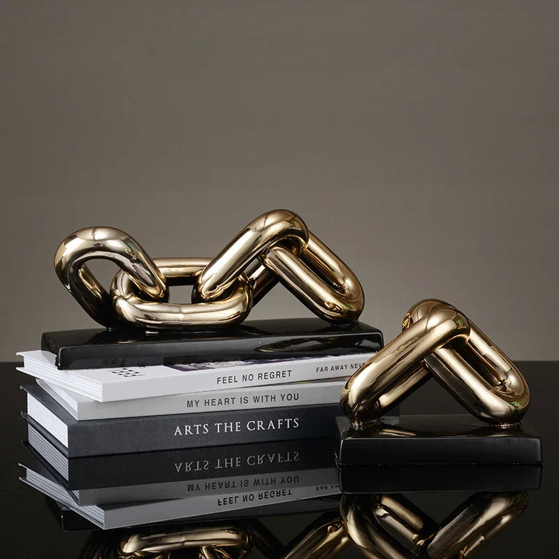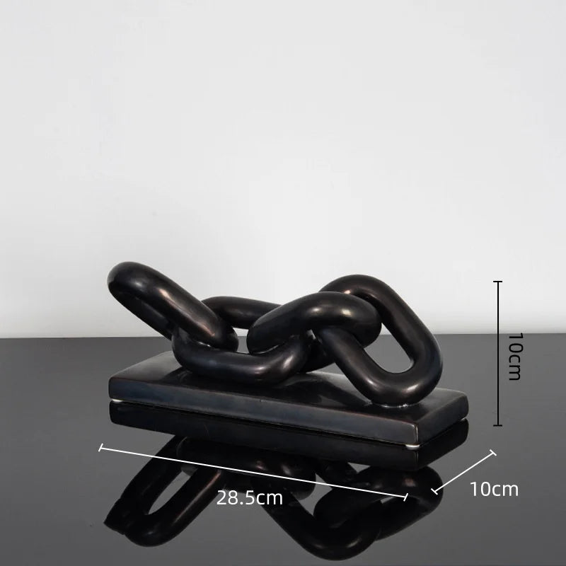 With its stylish design and intricate details, this figurine is sure to catch the eye of your guests. The golden chain adds a luxurious touch, making it a perfect addition to any modern decor theme. Whether you place it on a shelf, mantel, or coffee table, this piece is sure to stand out.