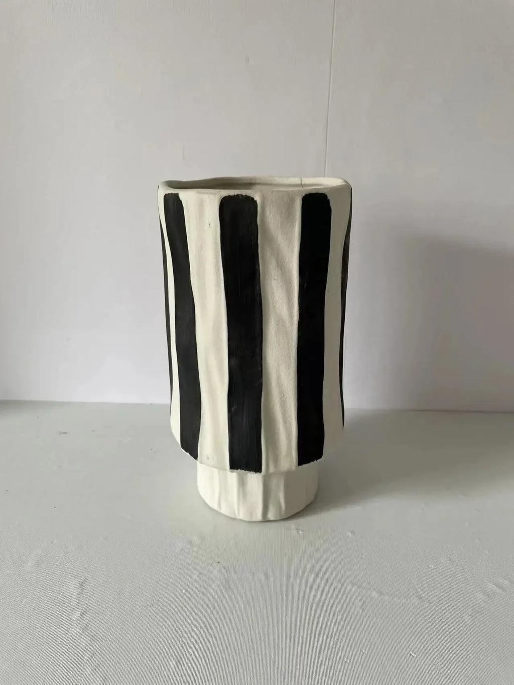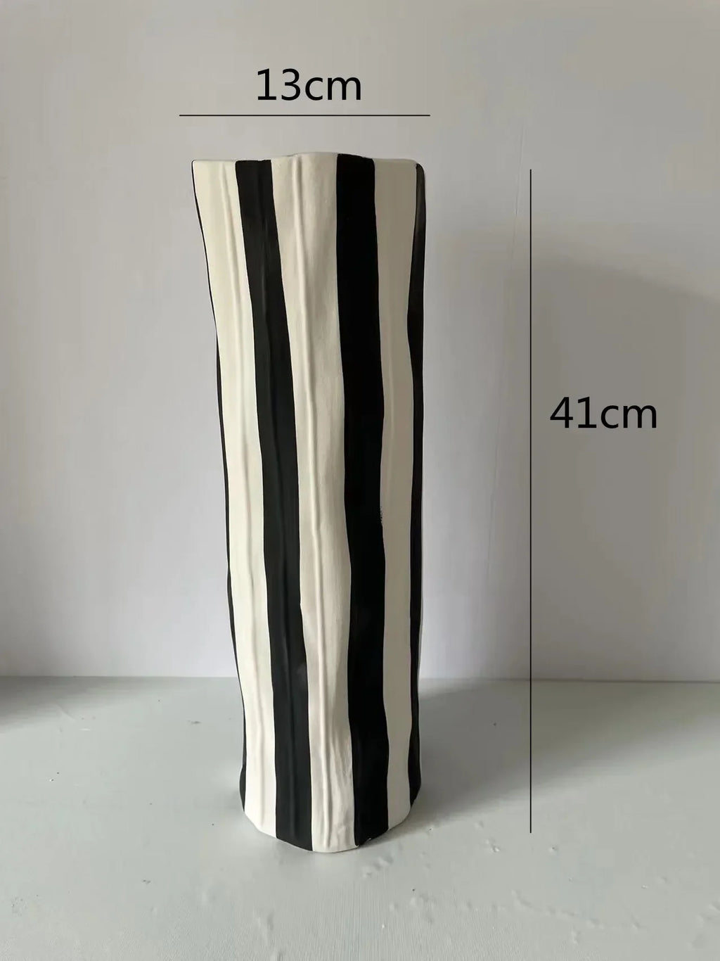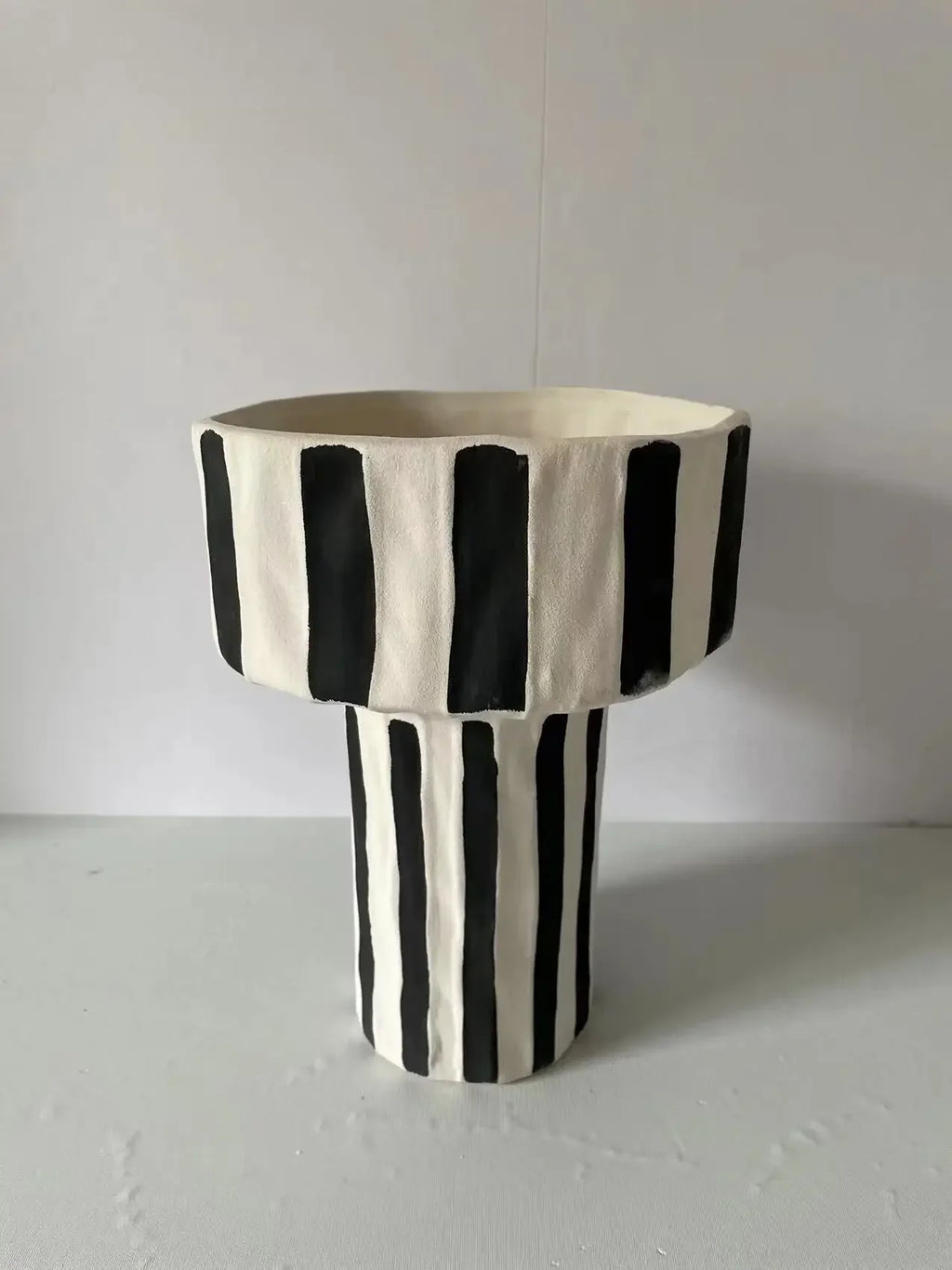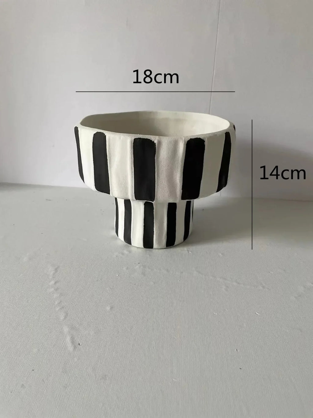 Afralia™ Striped Wide Mouth Ceramic Vase - Geometric Flowerpot Handicraft Ornaments