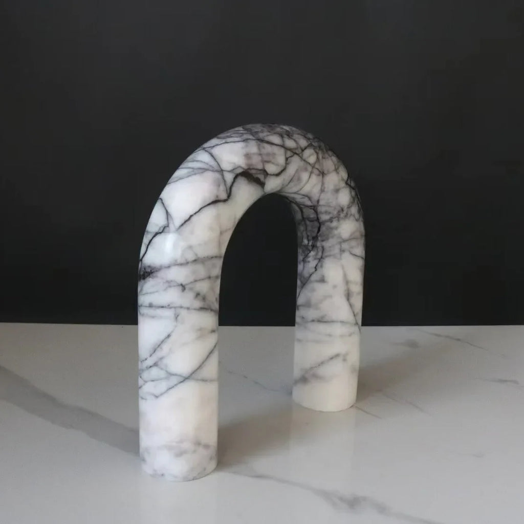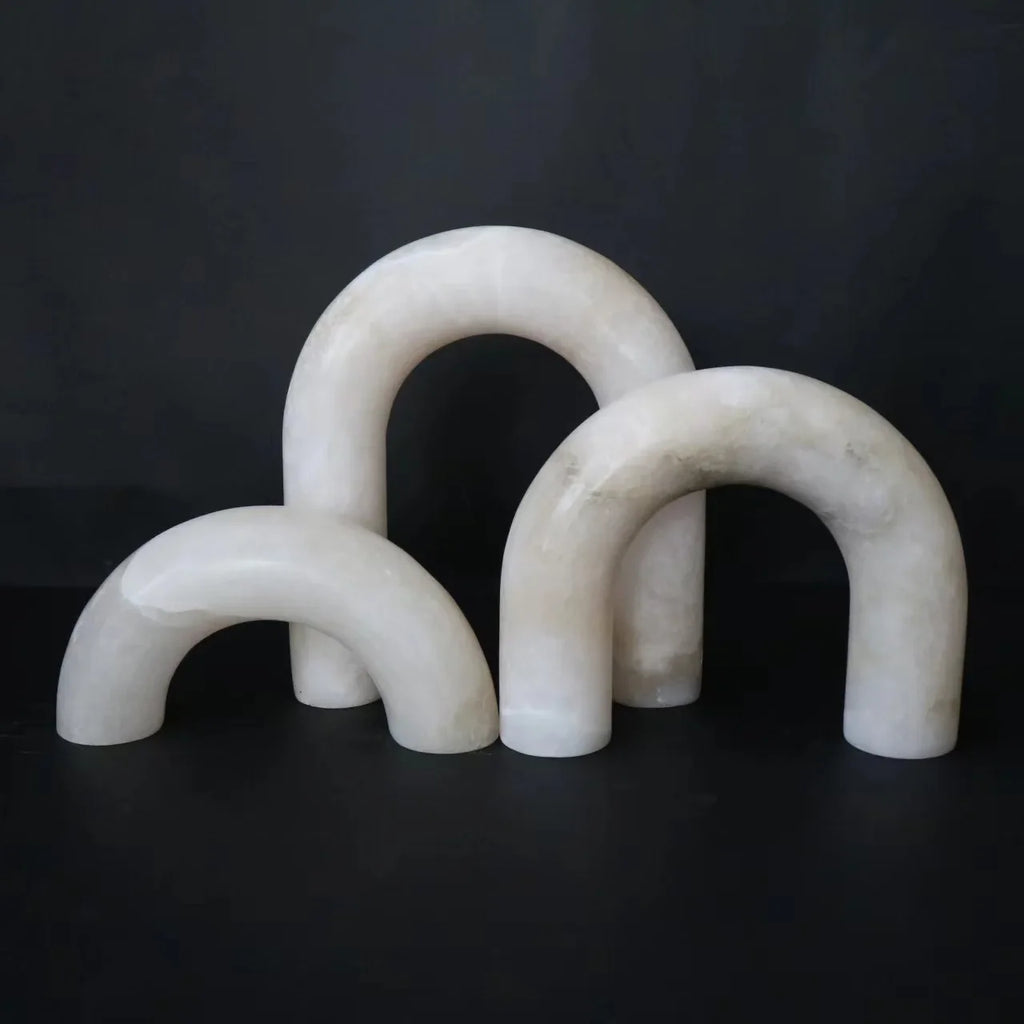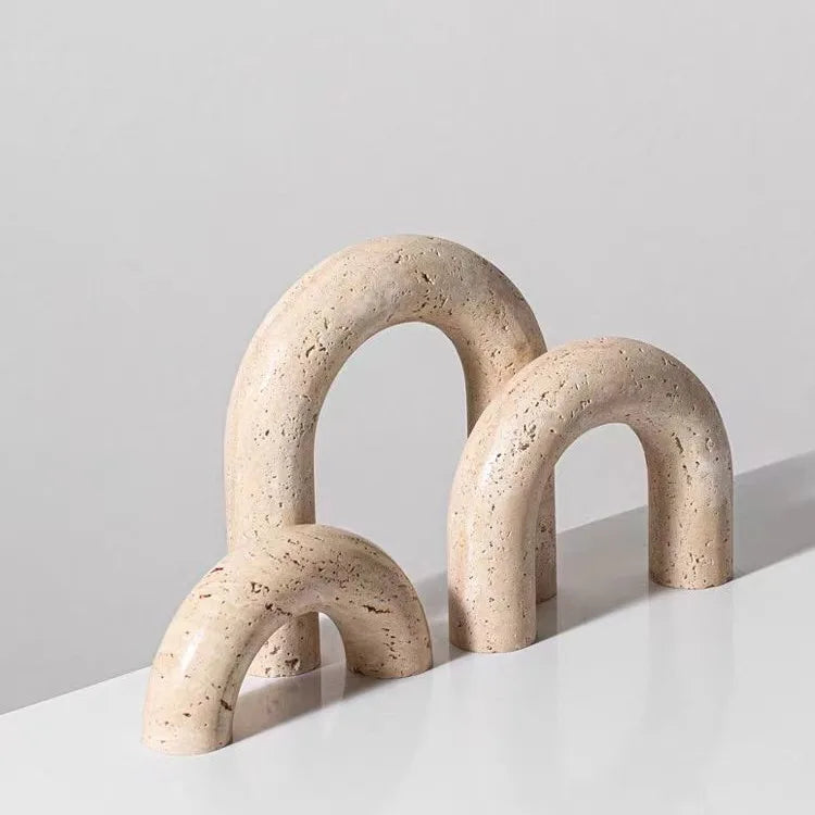 Afralia™ Marble Geometric Arch Sculpture: Elegant Yellow Cave Stone Ornament for Living Room.