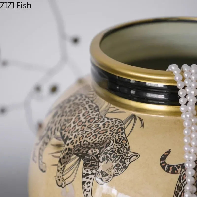 Afralia™ Porcelain Tiger Pattern Vase - Handmade Ceramic Home Decor