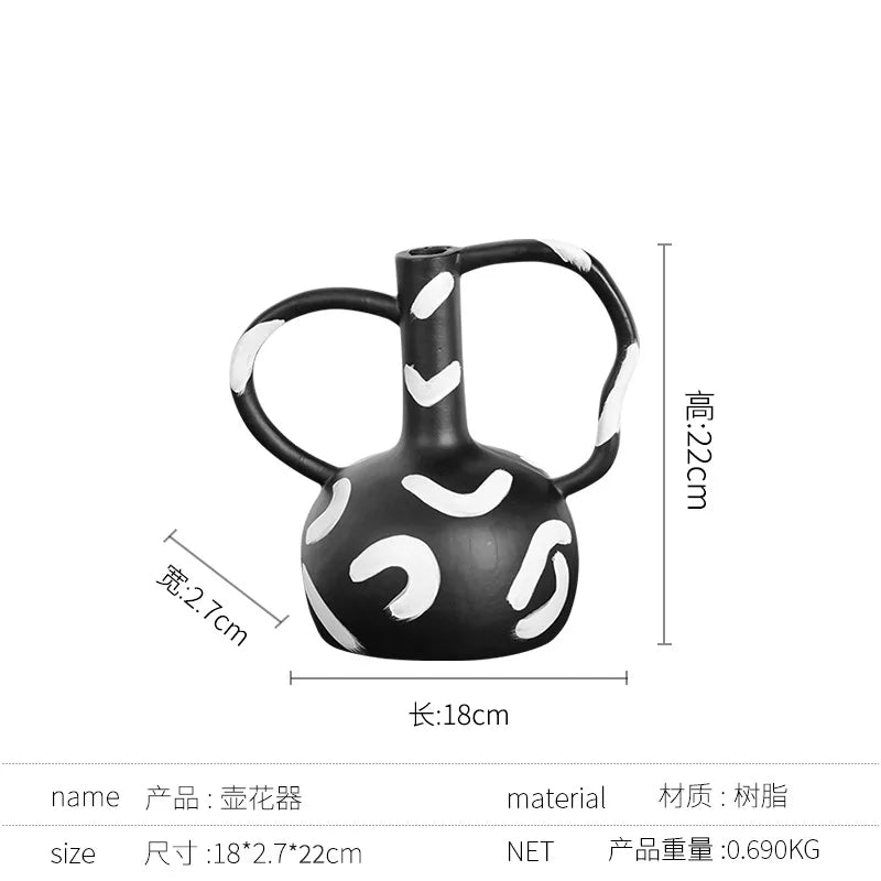 Crafted from high-quality resin, this vase is both durable and visually appealing. The geometric stripes and abstract handle design make it a statement piece that will enhance your interior decor.