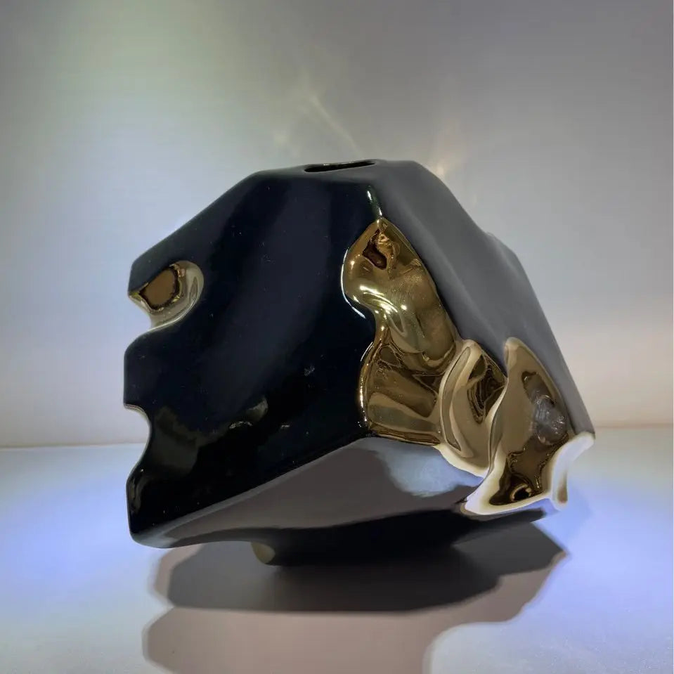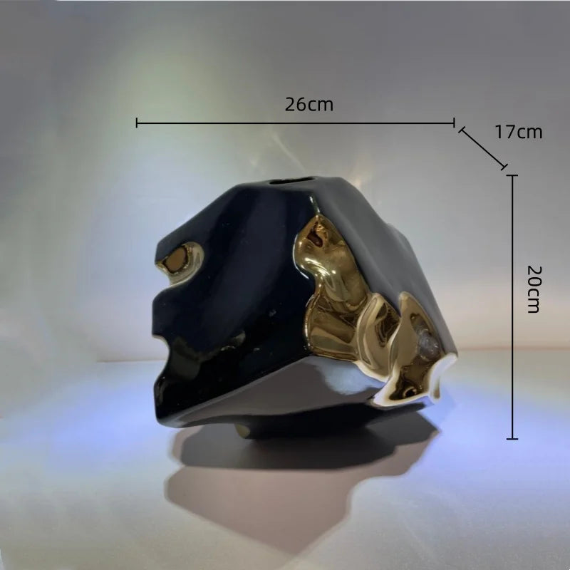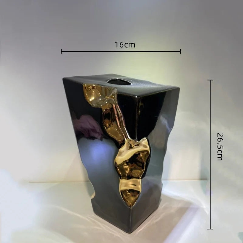 Afralia™ Golden Notch Ceramic Vase Geometric Square Design Home Decor Accessory