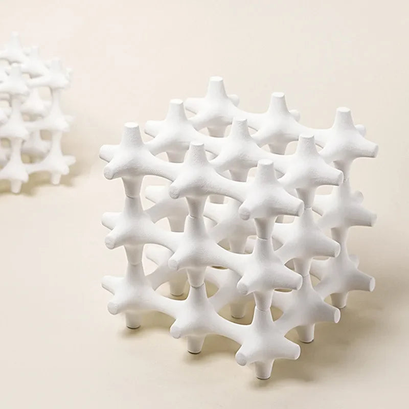 Afralia™ Silver Resin Cube Sculpture Home Decorative Figurine Hollow Layer H27