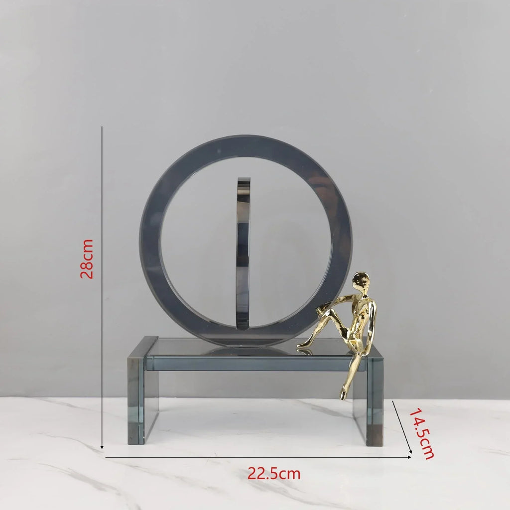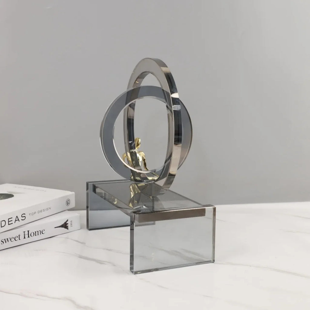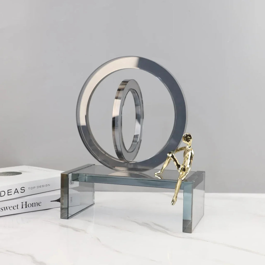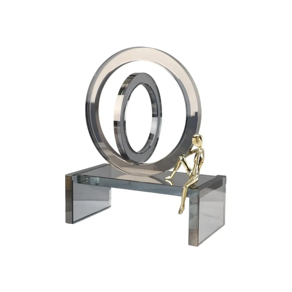 Afralia™ Geometric Crystal Rings Golden Man Ornament Glass Figurines Home Decor