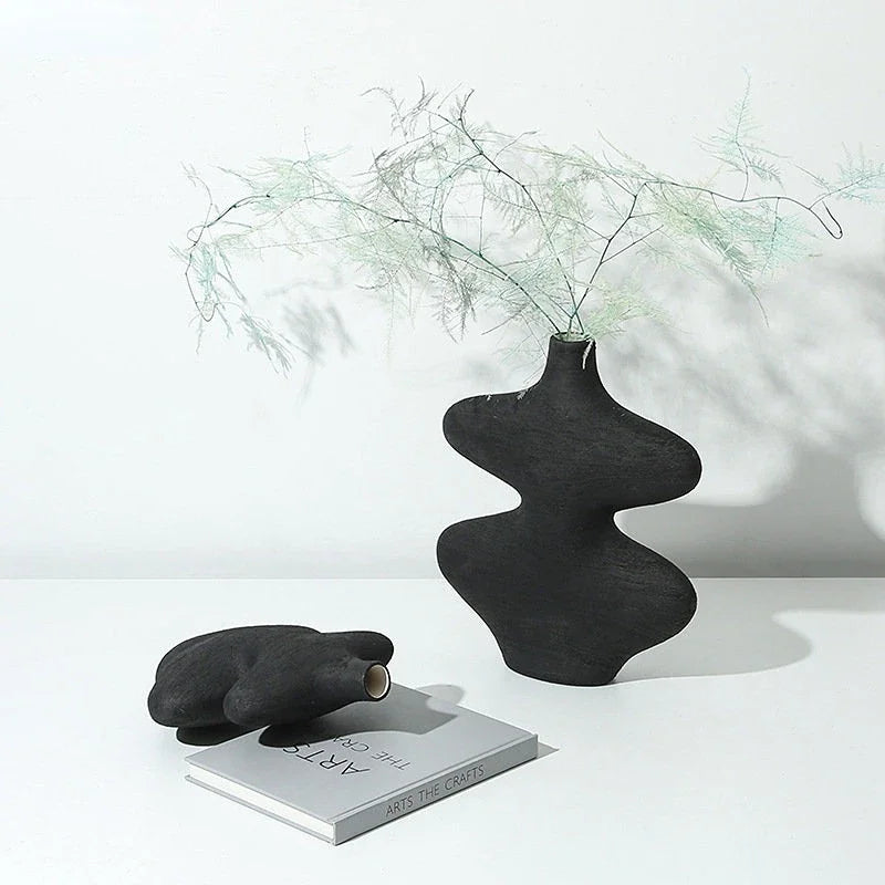 Afralia™ Geometric Ceramic Vase Set Black White Crafts Home Decor Flower Arrangement