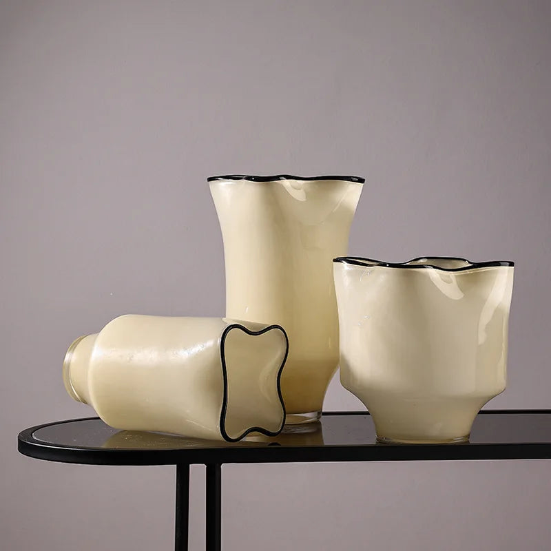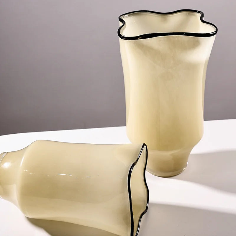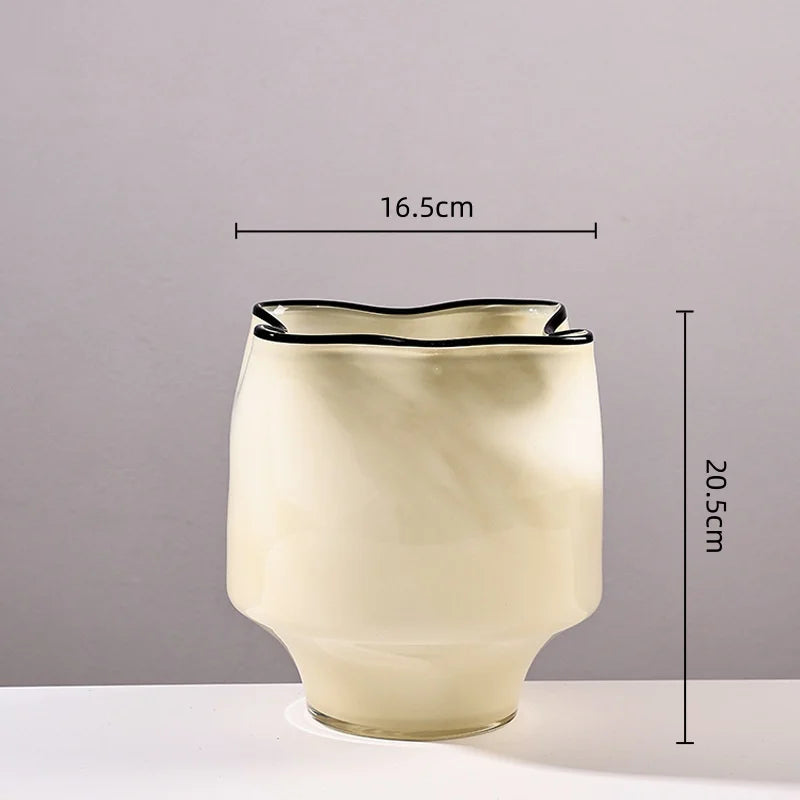Afralia™ Pleated Glass Vase: Black-edged Terrarium & Flower Arrangement Home Decor Jar