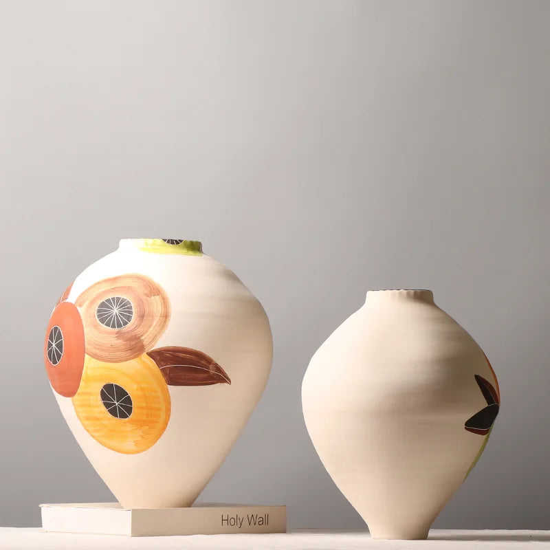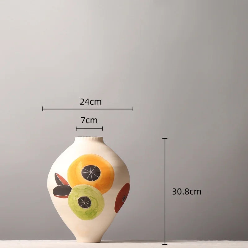 Afralia™ Hand-painted Coffee Beans Ceramic Vase - Colorful Flower Arrangement Bottle