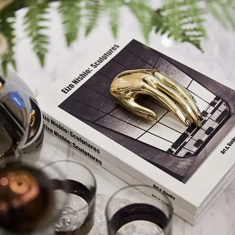 Designed with high-quality resin, this sculpture boasts a luxurious finish that adds a touch of sophistication to any space. The intricate design showcases two golden hands intertwined in a graceful and artistic manner, making it a perfect focal point for your living room, bedroom, or office.