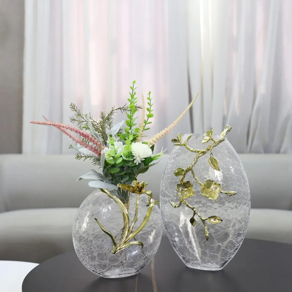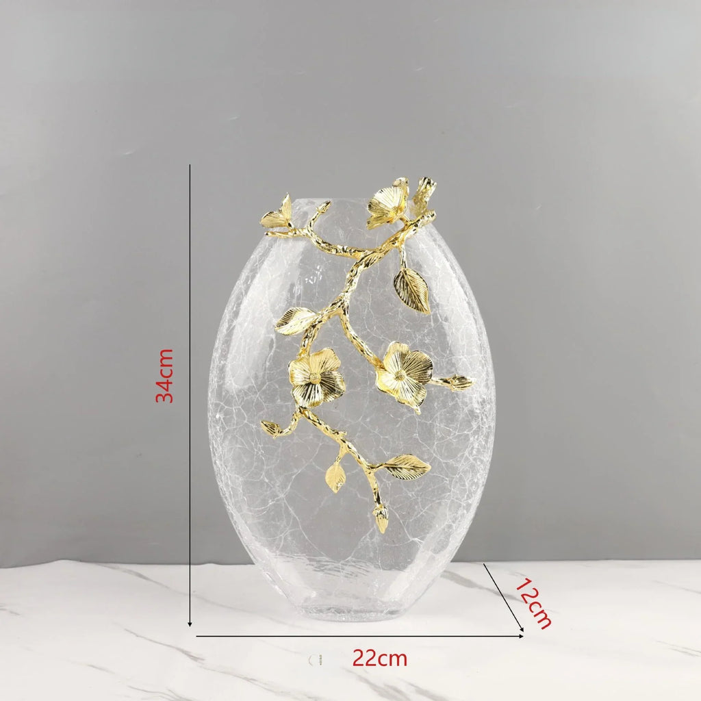 Afralia™ Round Golden Embossed Glass Vase for Home Decoration