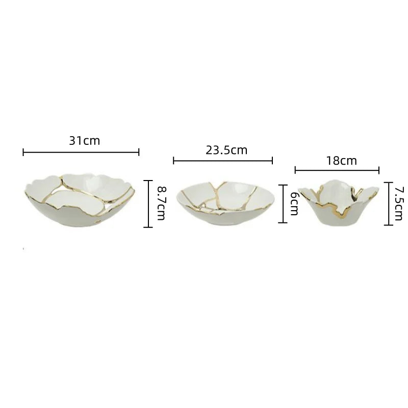 Introducing our exquisite Afralia™ Ceramic Fruit Platter with Golden Crack Design, complete with a wire tray for added elegance and functionality. This stunning piece is crafted from high-quality ceramic and enamel, ensuring durability and a luxurious look for your dining table or living space.