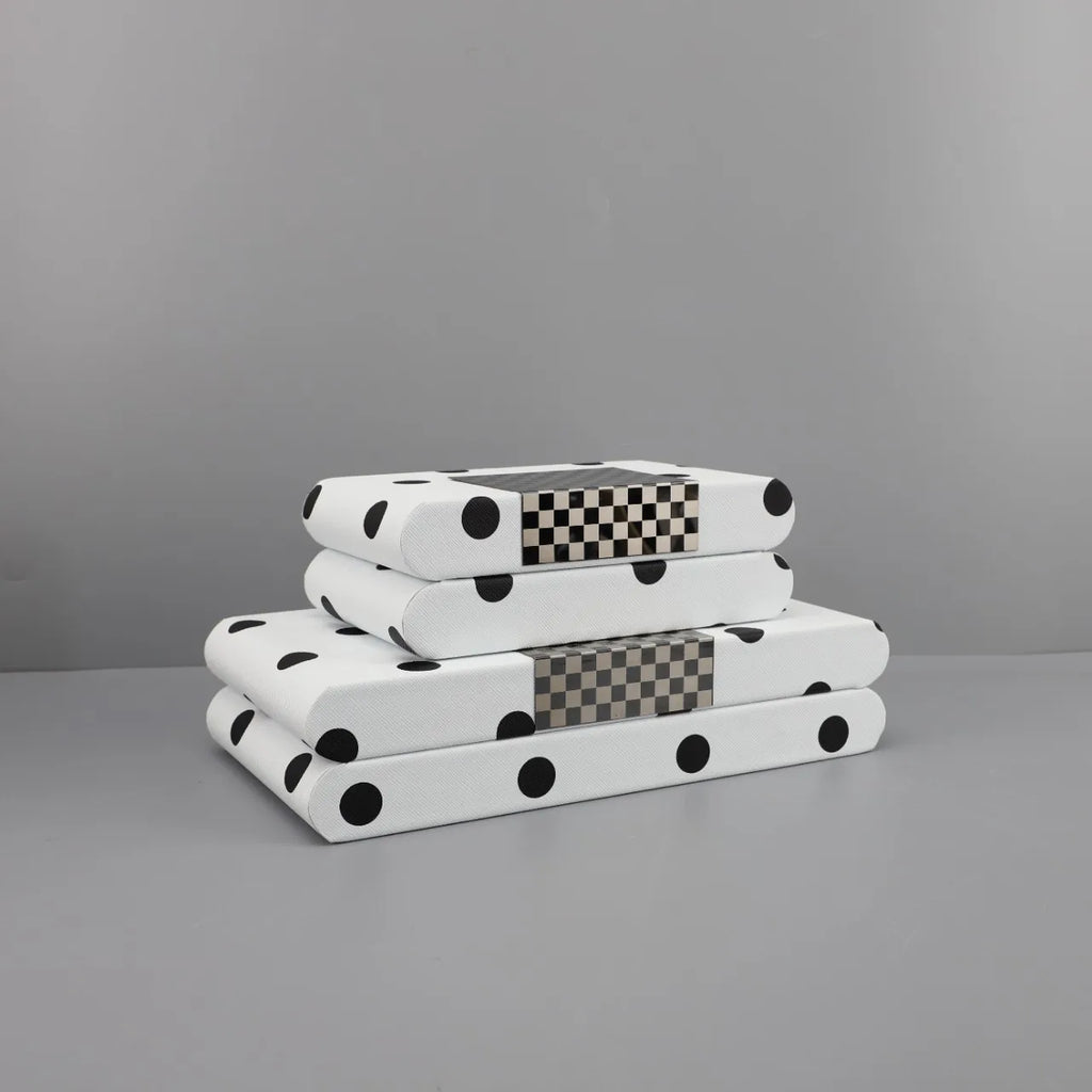 Afralia™ Black & White Polka Dot Leather Storage Box | Geometric Pattern Desktop Organizer