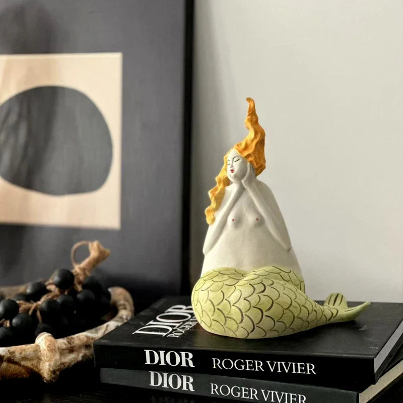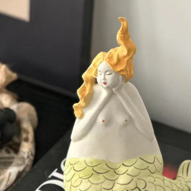 Afralia™ Mermaid Woman Sculpture Handmade Decorative Figurines Home Decor Ornament