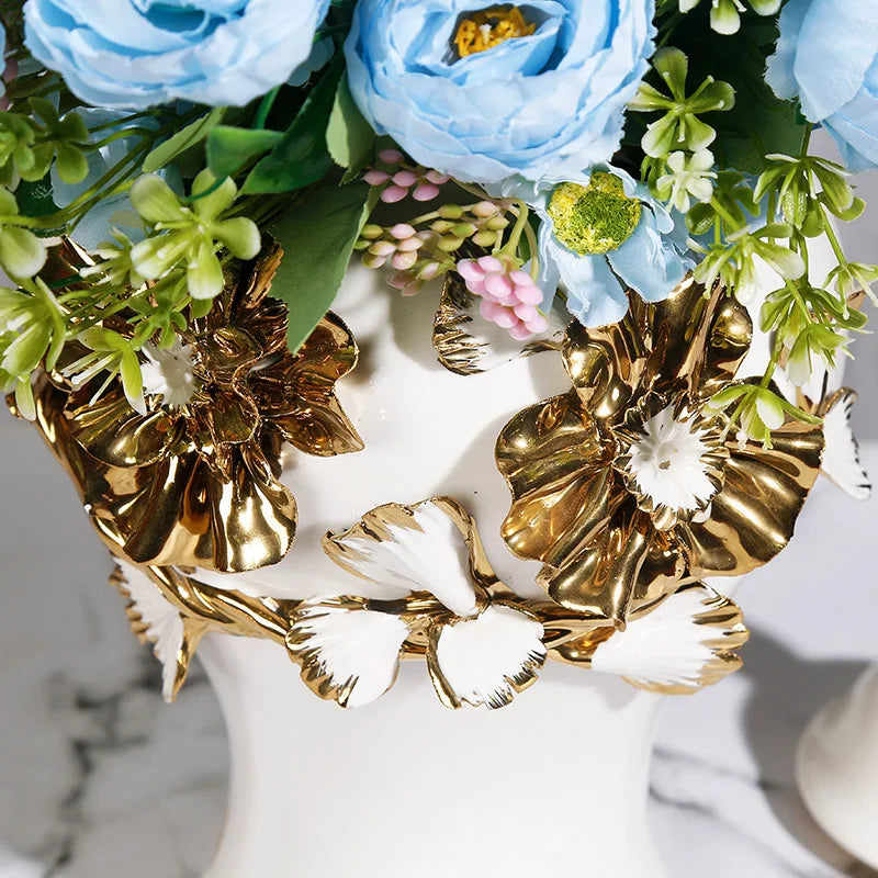 Afralia™ Floral Relief Ceramic Storage Jar - Golden Pot Vase