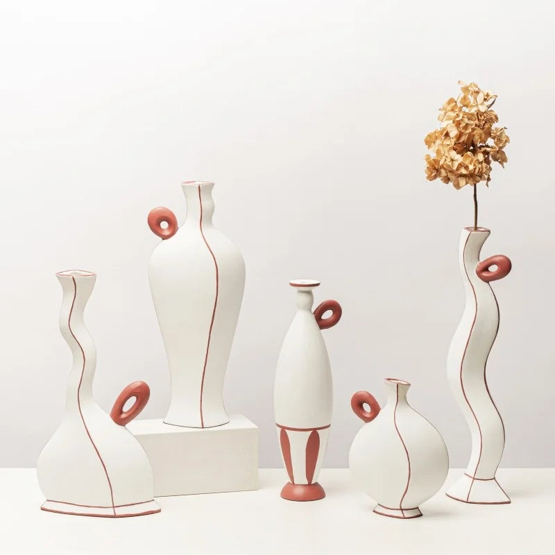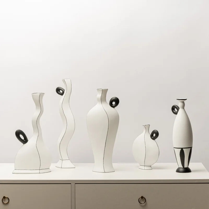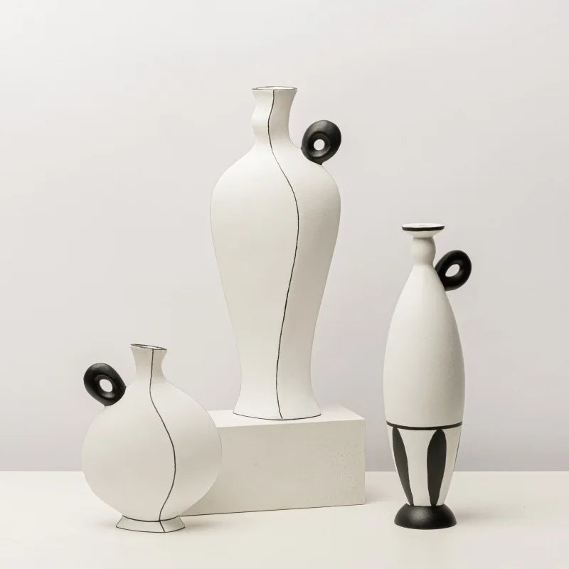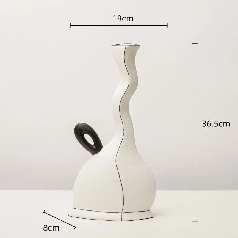Afralia™ Geometric Black Lines Resin Vase - Handcrafted Floral Home Decor