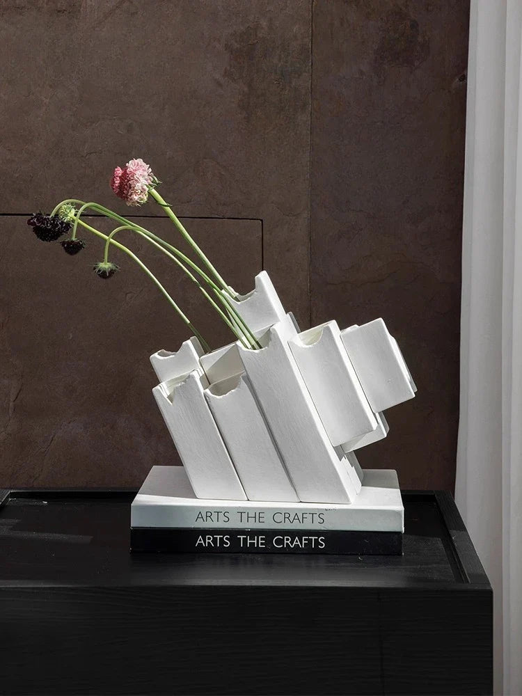 Afralia™ Geometric Ceramic Vase Block Splicing Flower Arrangement Handicrafts Home Decor