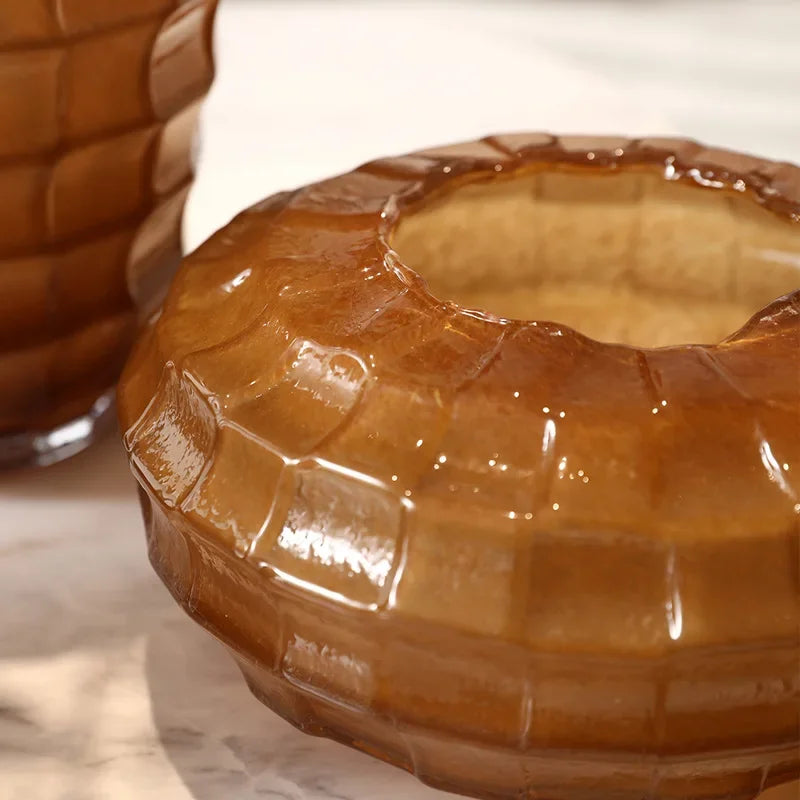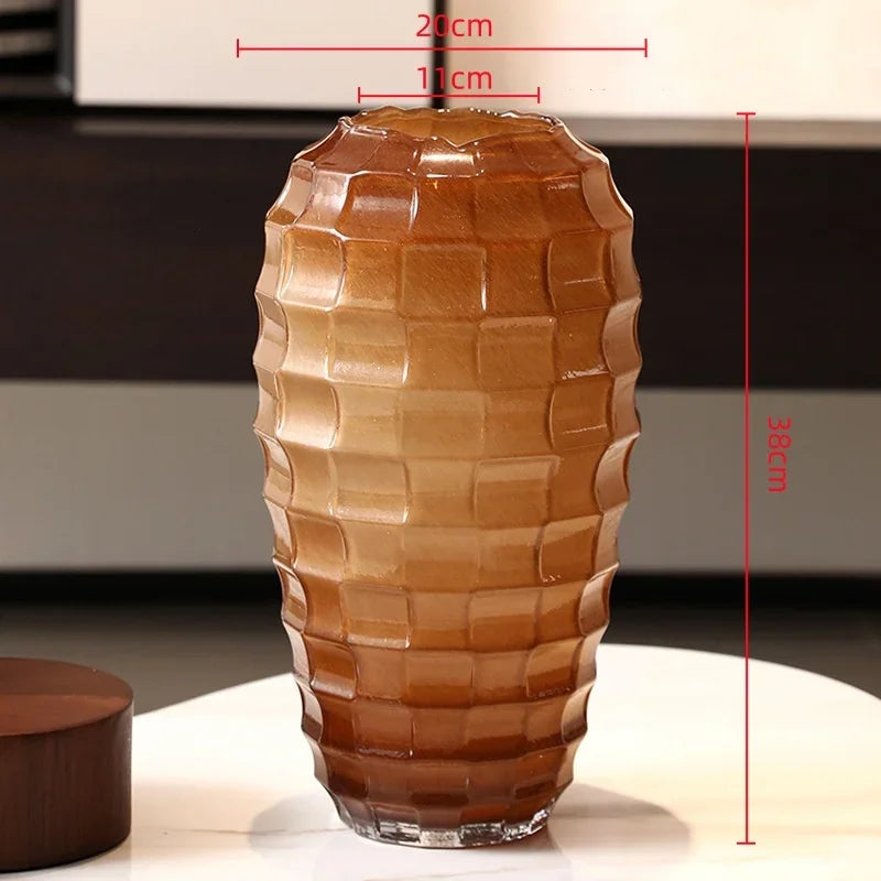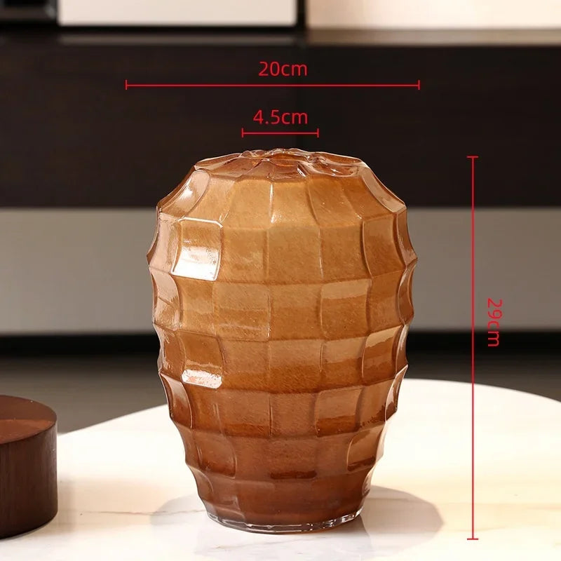 Afralia™ Geometric Frosted Glass Vase with Tartan Floral Arrangement