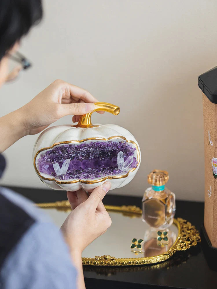Introducing the stunning Afralia™ Crystal Pumpkin Sculpture Jewelry Storage Box & Home Decor, a perfect combination of elegance and functionality for your living space. Crafted with high-quality glass material, this exquisite piece adds a touch of luxury to any room.