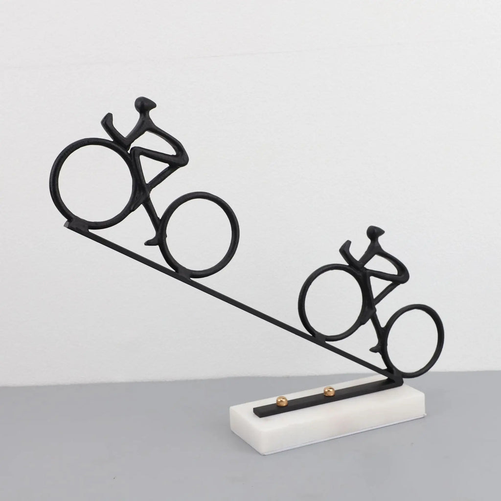 Designed with a modern aesthetic in mind, this sculpture features a mountain biker in action, capturing the thrill and excitement of the sport. Whether you're a biking enthusiast or simply appreciate artistry, this piece is perfect for adding a touch of personality to your home.