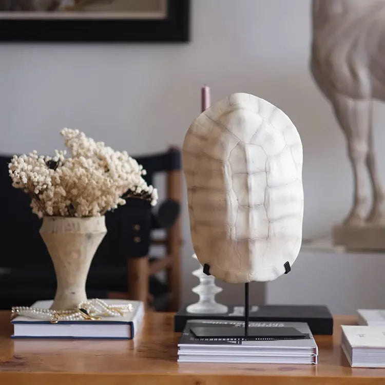 Embrace a touch of the wild with this exquisite turtle shell sculpture, which exudes a sense of elegance and sophistication. The intricate details and modern aesthetic make it a versatile decor piece that effortlessly complements a variety of interior design styles.