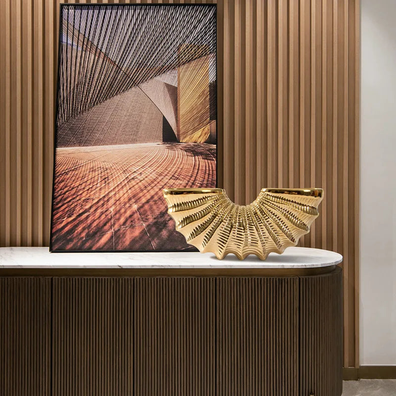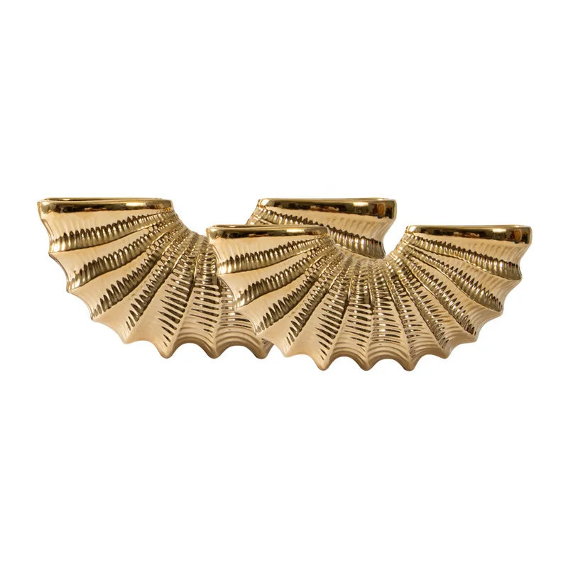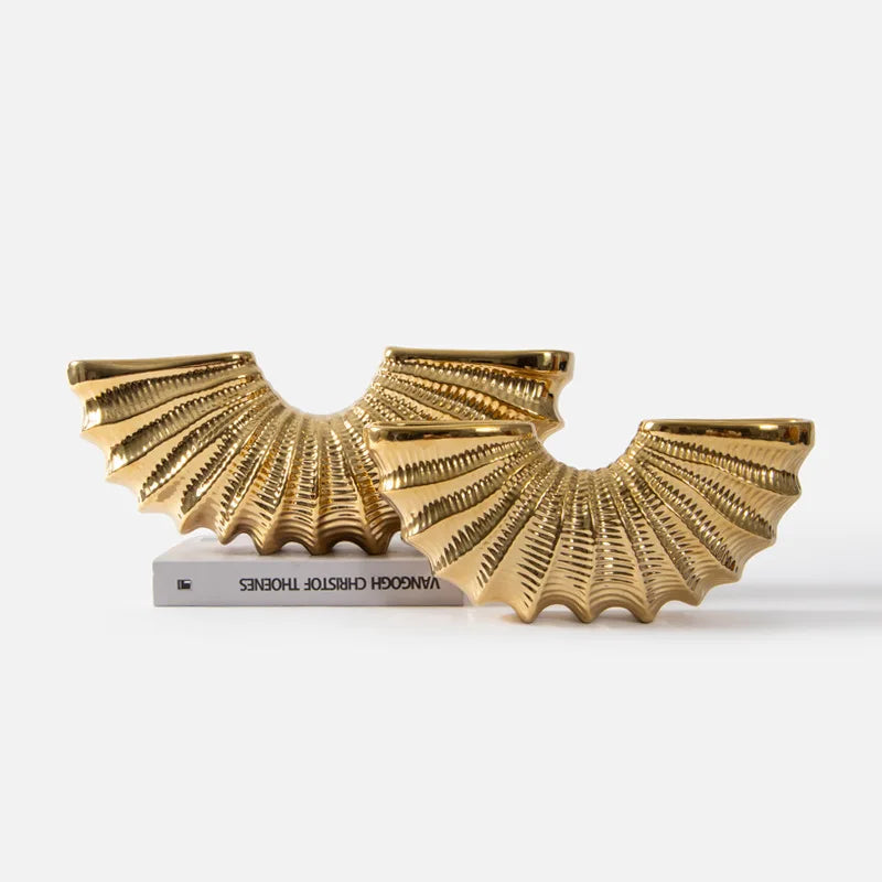 Introducing the Afralia™ Golden Shell Ceramic Vase, a stunning piece designed to elevate your living room decor effortlessly. Crafted with high-quality ceramic and enamel, this geometric masterpiece brings a touch of artistry to any space.