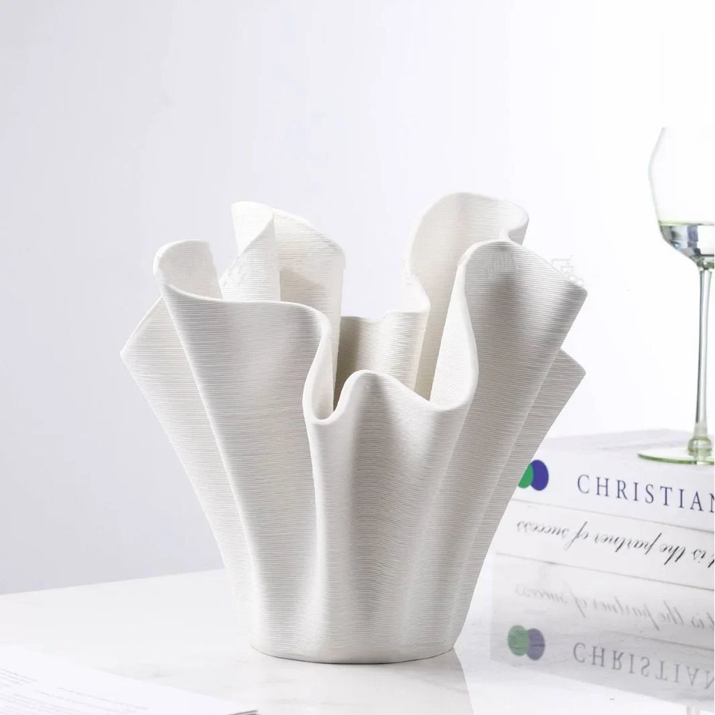 Afralia™ Geometric Pleated Ceramic Flowerpot & Vase Set for Home Decor