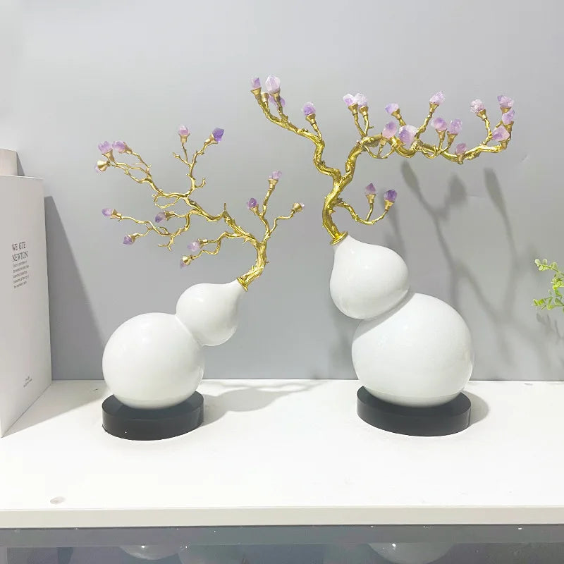 Afralia™ Gourd Crystal Sculpture Metal Plant Statues Home Decoration
