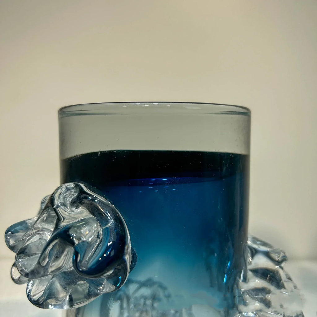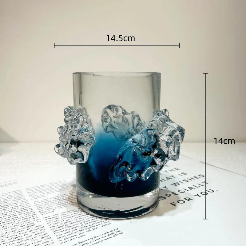 Crafted from high-quality glass and crystal materials, this vase exudes elegance and sophistication. The blue gradient wavy design adds a touch of visual interest, making it a standout piece in any setting.