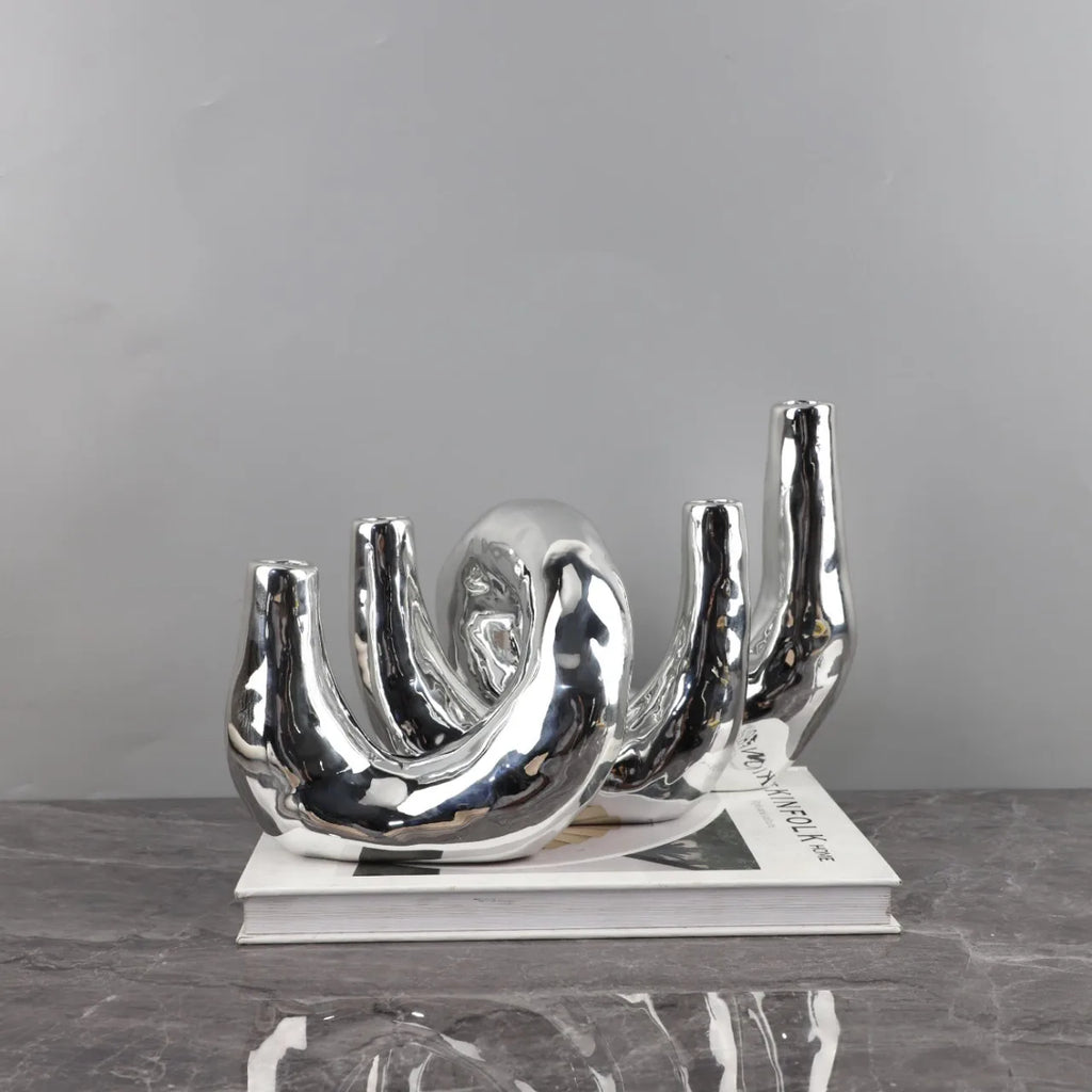 Afralia™ Silver Resin Geometric Candle Holder Candelabrum for Home Decor & Weddings