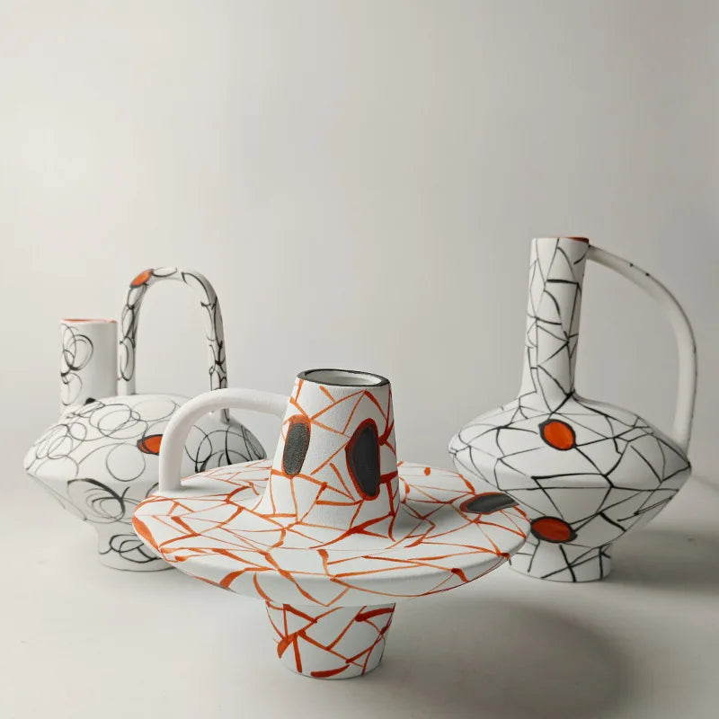 Afralia™ Geometric Line Ceramic Vase with Fringe Decoration